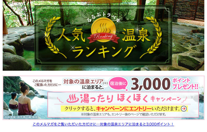 お得な情報満載のるるぶトラベルNEWSで配信する、メルマガ限定ポイントキャンペーンのサンプル画面をご紹介!